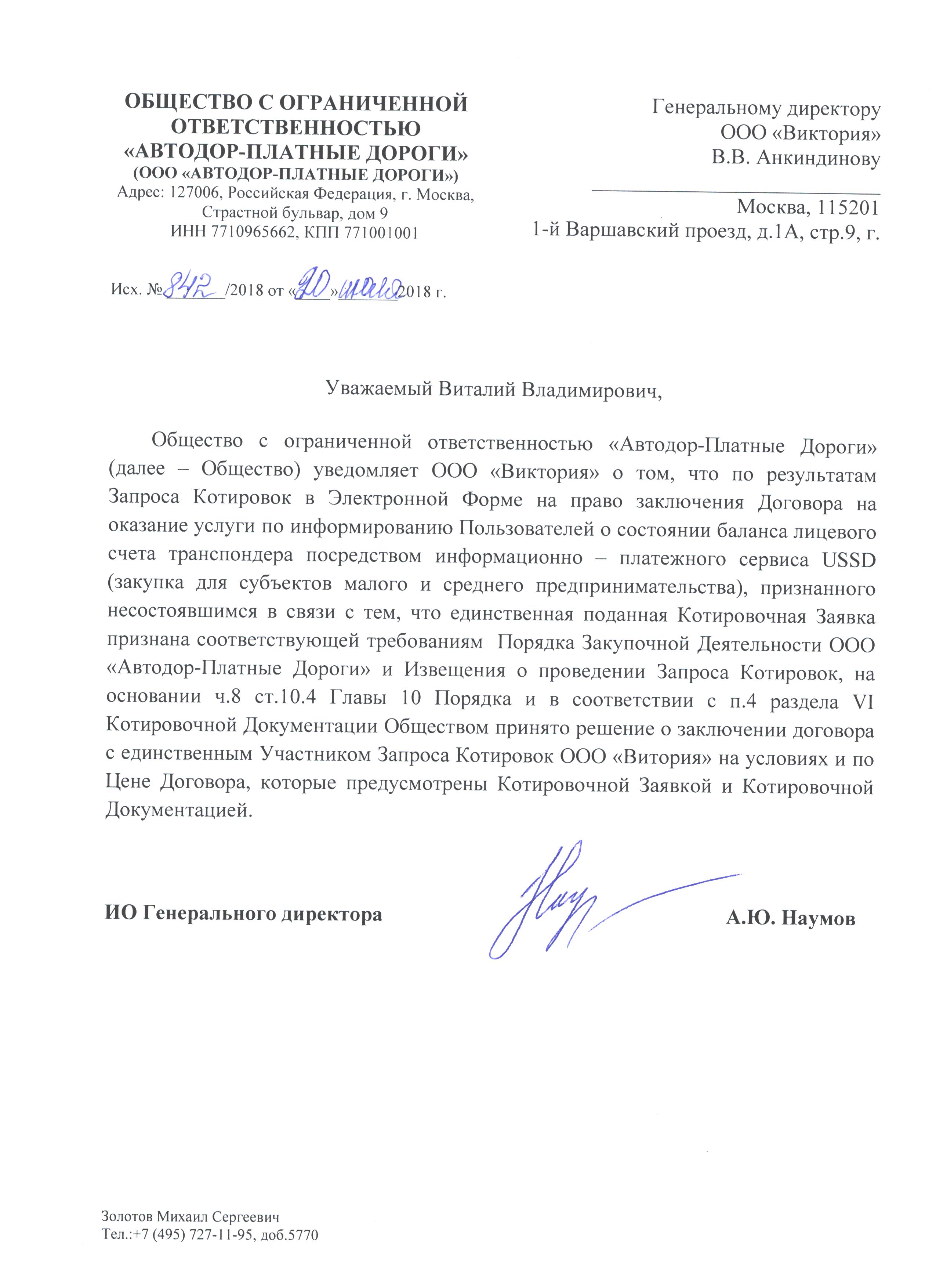 Запрос Котировок в Электронной Форме на право заключения Договора на оказание услуги по информированию Пользователей о состоянии баланса лицевого счета транспондера посредством информационно – платежного сервиса USSD (закупка для субъектов малого и среднего предпринимательства)